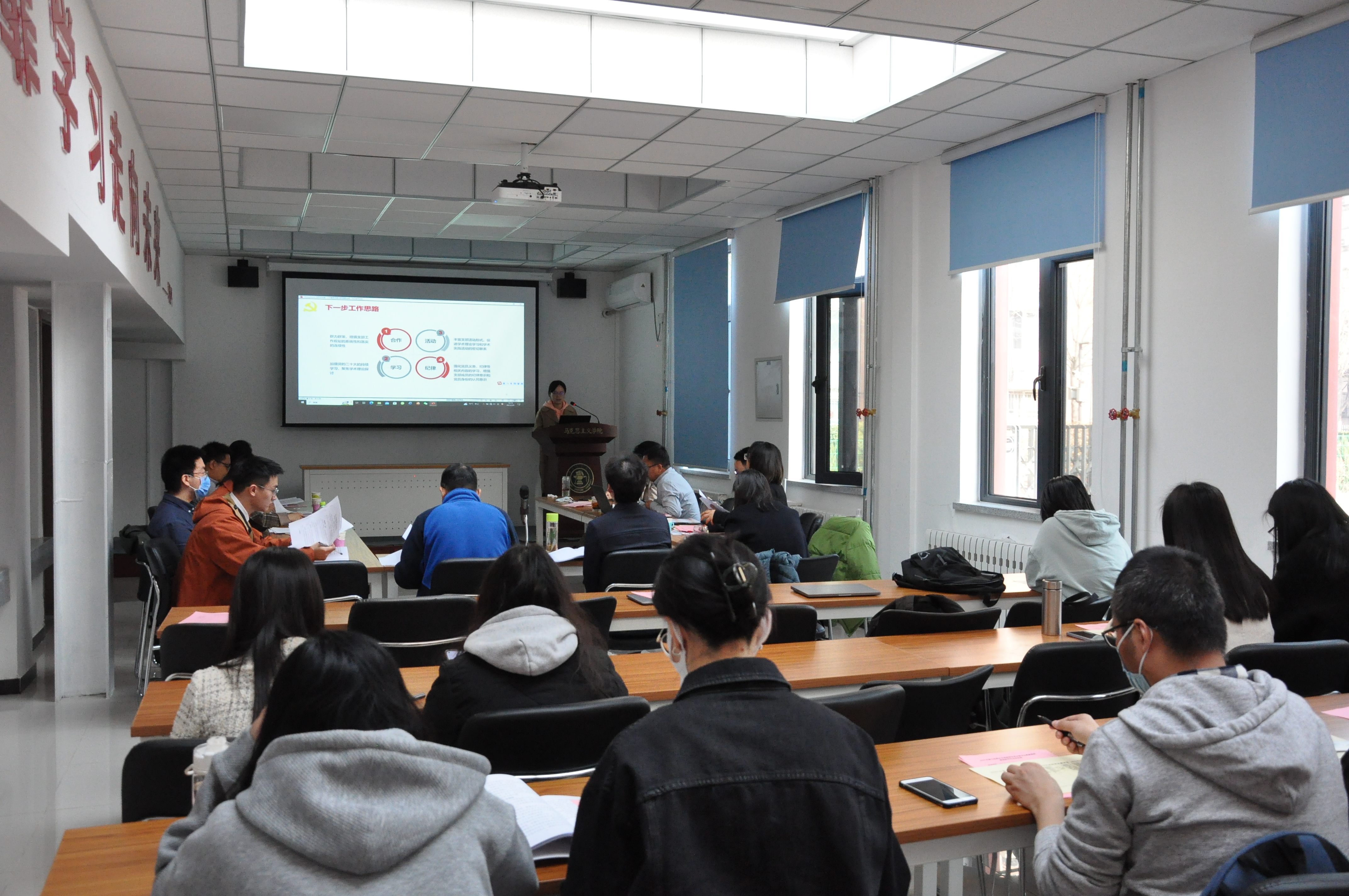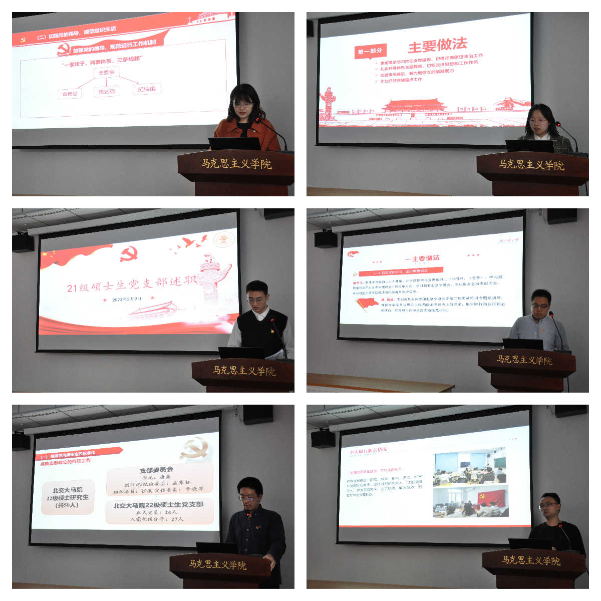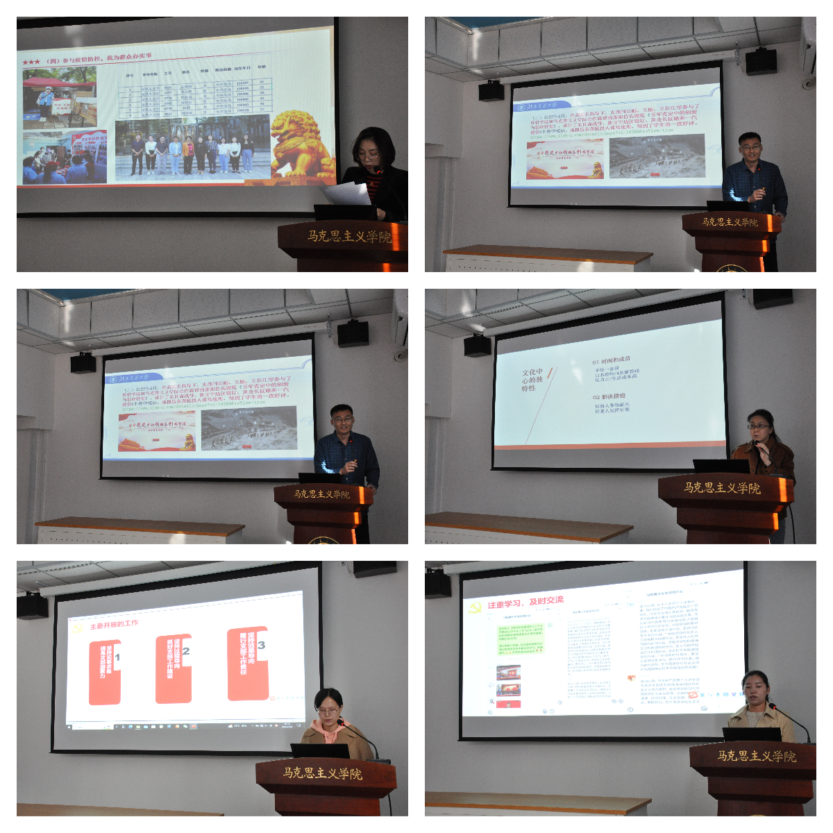 为加强支部特色品牌创建、提升党建工作质量,述职结束后,马克思主义基本原理教研部教师党支部、思想道德与法治教研部教师党支部和20级硕士生党支部分别就教科研、宣传、服务与支部工作深度融合,支部日常规范化管理与建设学习型党支部进行工作交流分享。