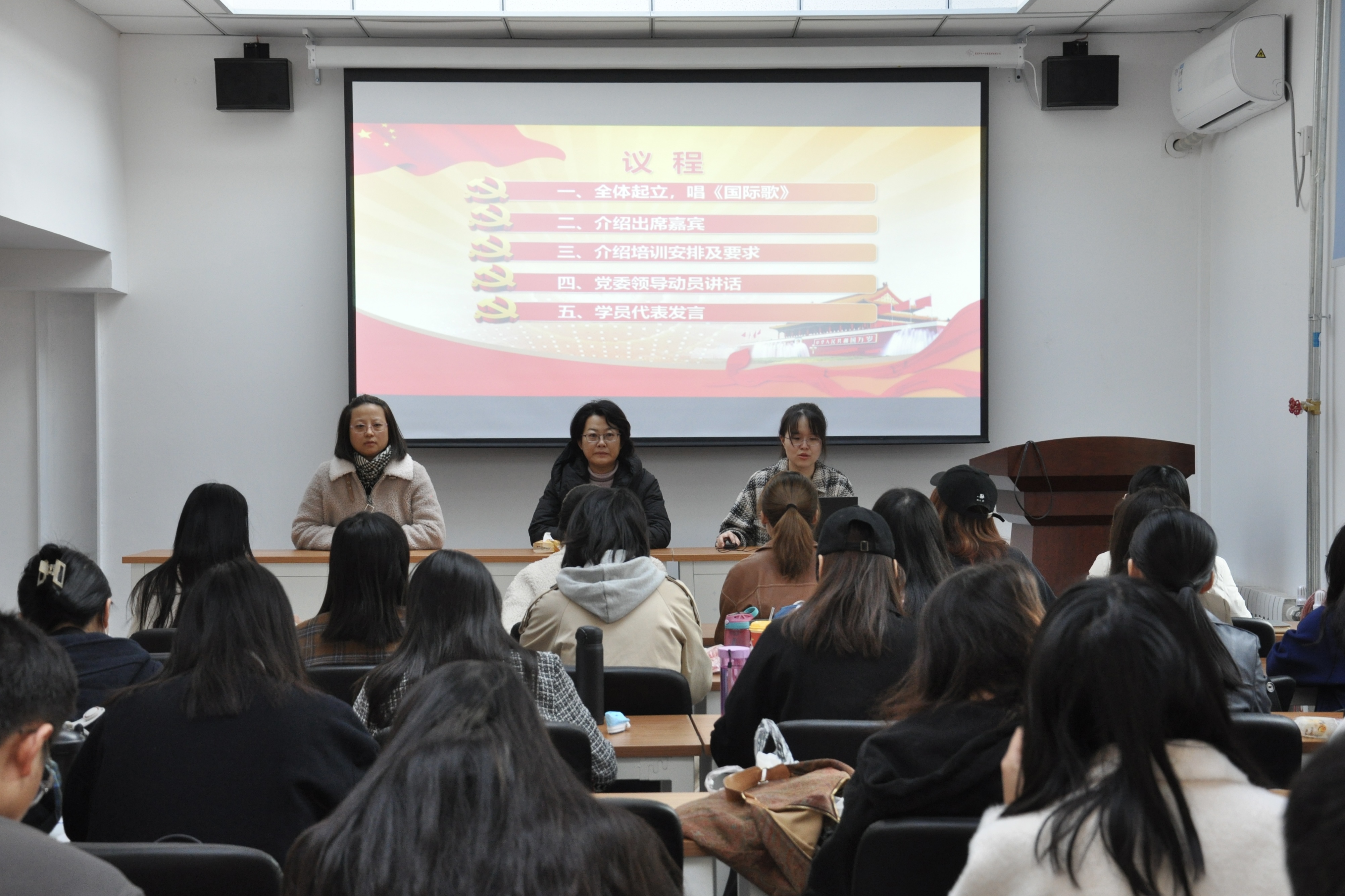 10月23日,欧冠官方网站分党校在向阳办公区2111室召开第82期党课发展对象培训班开班仪式。马克思主义学院党委副书记、副院长田永静、团委书记刘慧敏出席了仪式,第82期34名发展对象参加了仪式,仪式由20级硕士生党支部书记杜玉中主持。