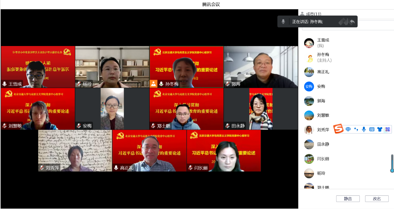 2022年12月16日上午,欧冠官方网站党委通过腾讯会议围绕“深入贯彻学习习近平总书记关于教育的重要论述”开展专题学习研讨,校党委副书记、纪委书记郭海参会指导,党委宣传部副部长张安梅、纪委办公室干部杨玲线上参会。院党委书记孙冬梅主持学习,学院党委理论学习中心组全体成员参加。