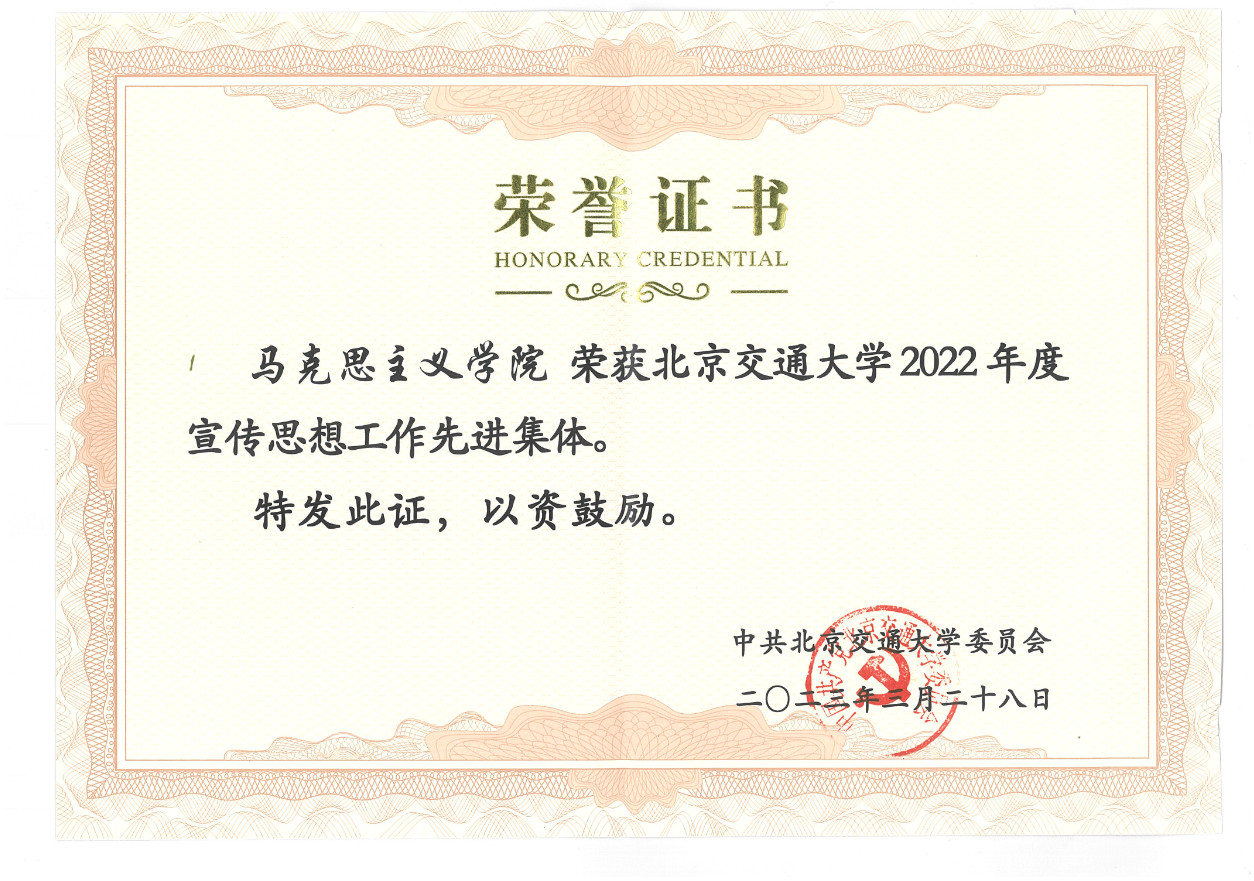 会上对2022年度学校宣传思想工作先进集体和个人进行了表彰并颁发荣誉证书。我院被评为“欧冠官方网站2022年度宣传思想工作先进集体”。我院高正礼、韩振峰、杨蔚、吴琼、郑士鹏、刘慧敏荣获“2022年度宣传思想工作优秀宣传员”称号;李妍、吉娜娜荣获“2022年度宣传思想工作优秀学生记者”称号。