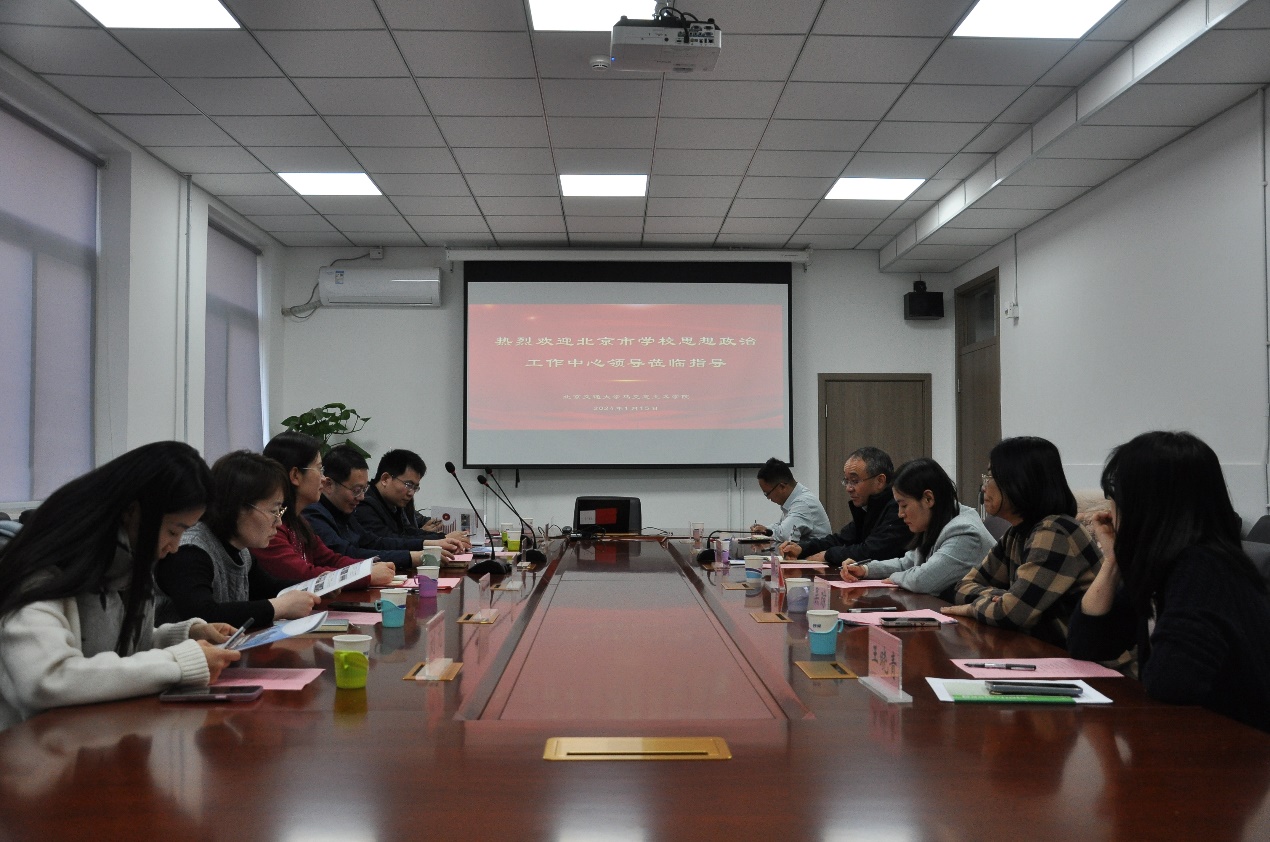 1月15日下午,北京市学校思想政治工作中心主任薛健一行到欧冠官方网站调研交流。欧冠官方网站副院长郑士鹏主持座谈交流会。