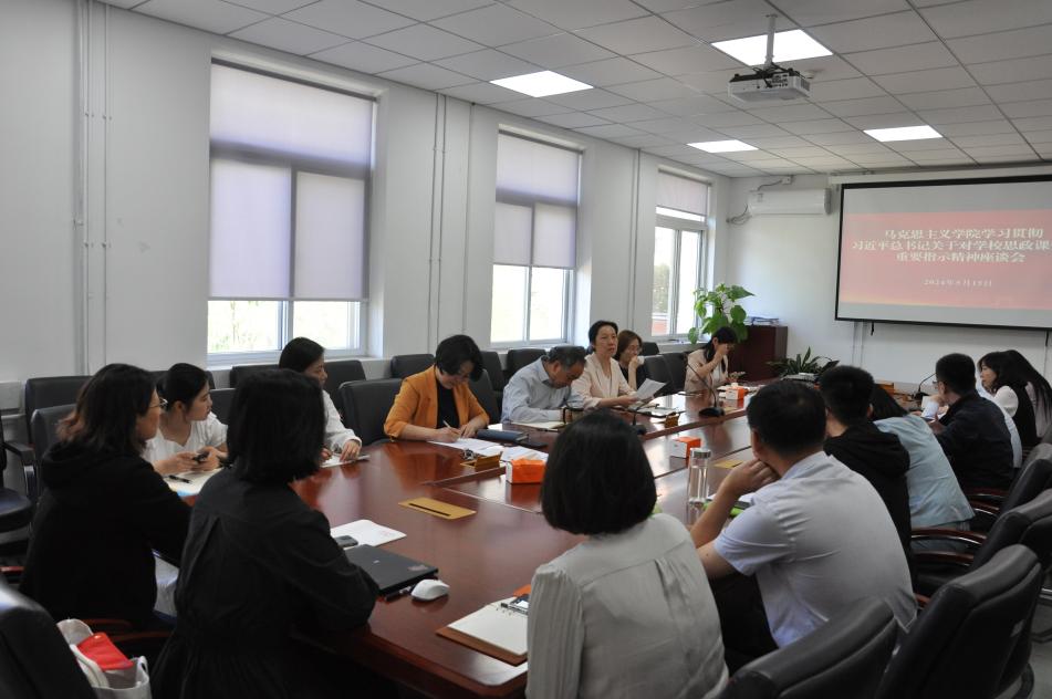 5月15日,欧冠官方网站欧冠官方网站组织召开“学习贯彻习近平总书记关于对学校思政课建设重要指示精神”座谈会,深入学习贯彻习近平总书记关于学校思政课建设的重要指示精神,推动新时代思政课高质量发展。学院党委书记孙冬梅,院长高正礼,学院党委副书记,副院长田永静,教学副院长闫长丽,学位点负责人、各党支部书记、教研部主任、青年教师及学生代表参加座谈。本次座谈会由孙冬梅主持。