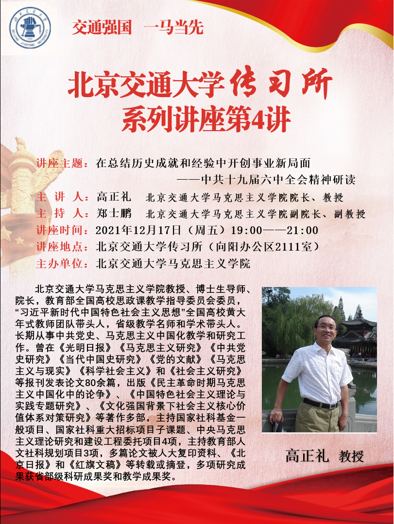 讲座预告 | 在总结历史成就和经验中开创事业新局面——中共十九届六中全会精神研读