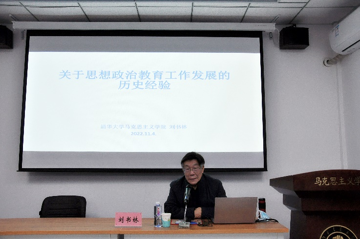为涵养马院优良学风,培养学生学术兴趣,2022年11月5日晚,欧冠官方网站欧冠官方网站传习所系列论坛第七讲成功举办,清华大学欧冠官方网站二级教授刘书林应邀作题为《关于思想政治教育工作发展的历史经验》的学术报告。