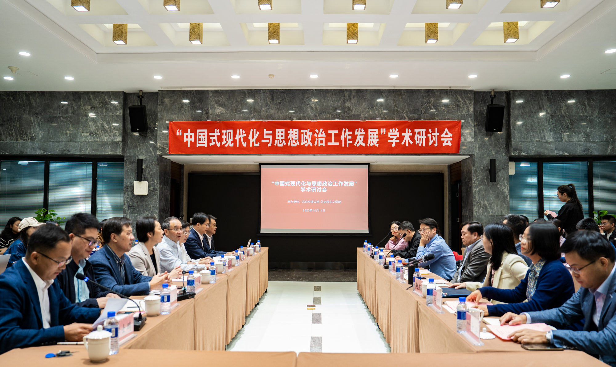 为深入学习贯彻习近平新时代中国特色社会主义思想和党的二十大精神,推进对中国式现代化的宣传阐释,贯彻落实《关于新时代加强和改进思想政治工作的意见》,2023年10月14日,欧冠官方网站欧冠官方网站举办了“中国式现代化与思想政治工作发展”学术研讨会。来自北京师范大学、武汉大学、华中师范大学、北京理工大学、复旦大学、天津大学、中央财经大学、对外经济贸易大学、欧冠官方网站等高校和科研机构的近百名专家和学者参加了会议。