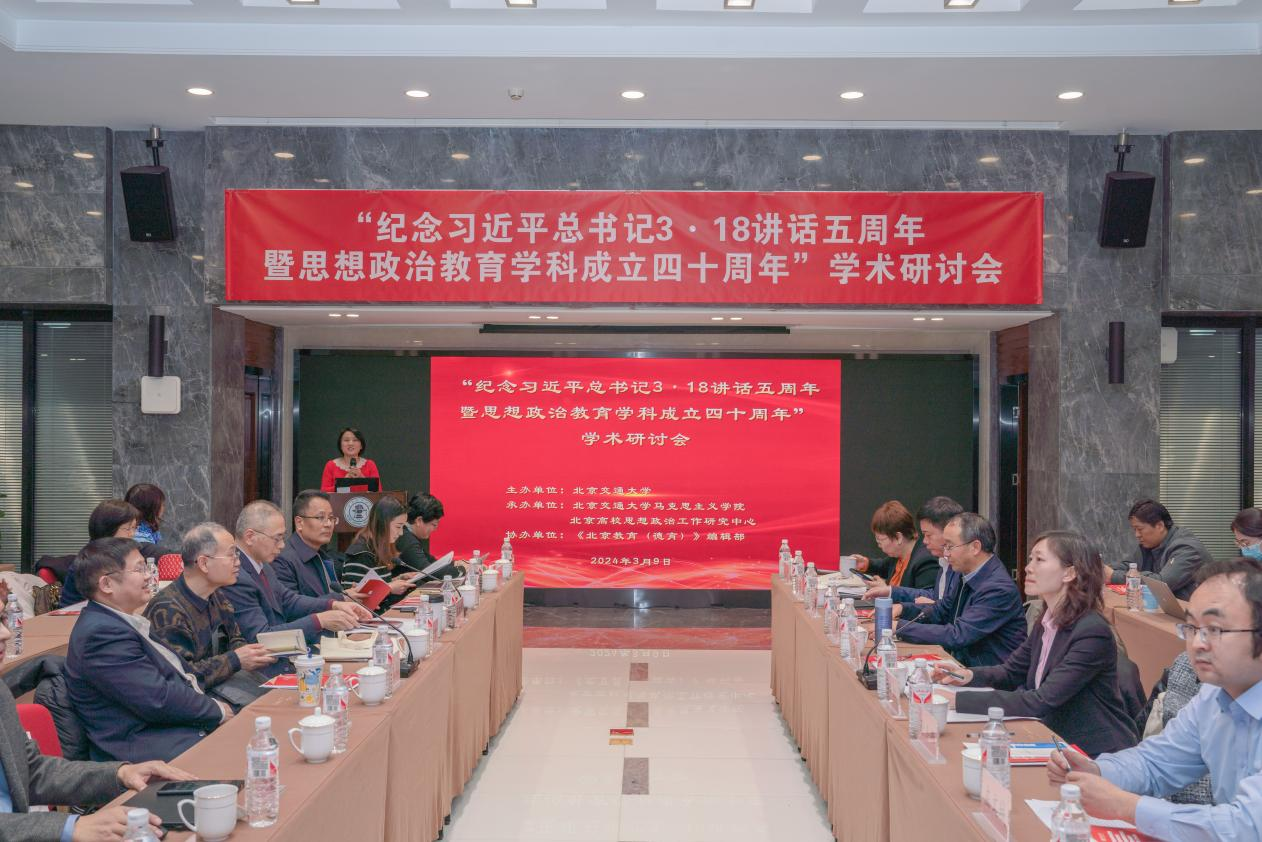 2024年3月9日,为深入学习贯彻习近平新时代中国特色社会主义思想、党的二十大精神和习近平总书记3·18重要讲话精神,热烈庆祝思想政治教育学科成立四十周年,欧冠官方网站欧冠官方网站和北京高校思想政治工作研究中心联合举办了“纪念习近平总书记3·18重要讲话五周年暨思想政治教育学科成立四十周年”学术研讨会。来自中国人民大学、复旦大学、武汉大学、东北师范大学、北京航空航天大学、北京建筑大学、中国矿业大学(北京)、北京第二外国语大学、首都师范大学、欧冠官方网站等高校和科研机构的近百名专家和学者参加了会议。